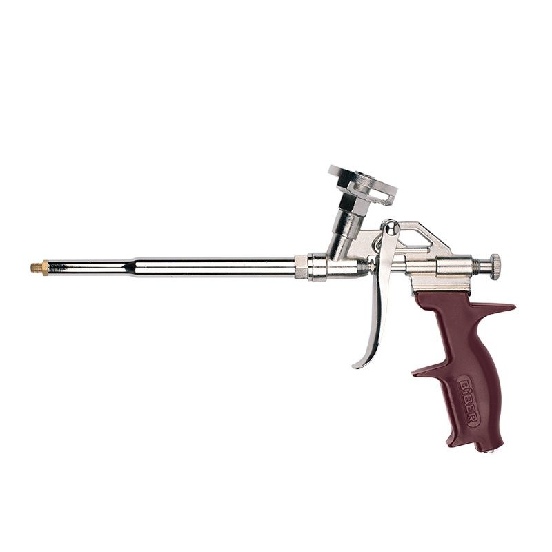 Пистолет для монтажной пены Biber 60111 Мастер предназначен для нанесения полиуретановой пены при монтаже окон, дверей и других конструкций. Сопло с удлинителем позволяет наносить пену в труднодоступные места. Разборная конструкция дает возможность очищать пистолет после использования. Эргономичная форма.