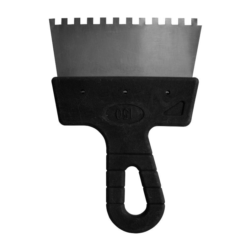 БИБЕР 35215 Шпатель фасадный 250мм нержавеющий зубчатый (6мм) предназначен для нанесения клеевых составов и выравнивания строительных смесей на больших поверхностях.
