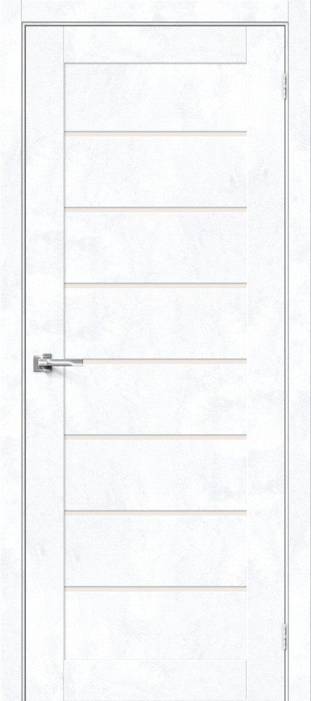 Дверное полотно БРАВО межкомнатное Браво-22 (Snow Art, Magic Fog) 200*60 – современная модель с горизонтальным рисунком и тонкими вставками из белого стекла сатинато Magic Fog. Поверхность двери покрыта высокотехнологичным покрытием Экошпон, обладающим высокими показателями устойчивости к воздействию внешней среды и механическим повреждениям.