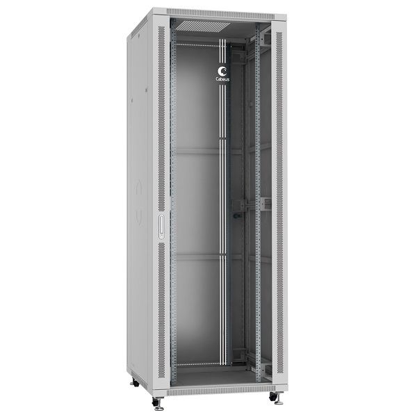 Cabeus Шкаф монтажный телекоммуникационный напольный 19 47U, SH-05C-47U80/80, 800x800x2277mm (ШхГхВ) передняя стеклянная и задняя сплошная металлическая двери, ручка с замком, цвет серый (RAL 7035) - оптимальное решение (цена/качество) для установки кроссового, телекоммуникационного и серверного оборудования, стандарта 19 дюймов (19)