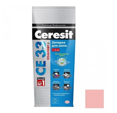 Церезит CE 33 цвет Роса - цветная затирка с противогрибковым эффектом для швов плиточных облицовок шириной до 6 мм. Затирка CE 33 предназначена для заполнения швов керамических и каменных облицовок, устроенных на недеформирующихся основаниях (таких как бетон, цементные стяжки и штукатурки), на полах и стенах внутри и снаружи зданий. Может применяться в небольших крытых бассейнах.