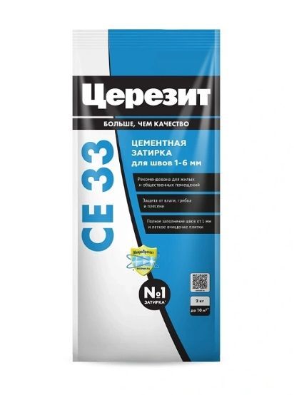 Затирка Церезит CE 33 1-6мм №03 белый мрамор 2кг - цветной цементный состав для заполнения узких плиточных швов. Предназначена для швов от 1 до 6 мм. В состав включены противогрибковые добавки, обеспечивающие защиту от образования пятен грибка и плесени. Состав предназначен для применения в сухих помещениях и помещениях с частым увлажнением (ванные, душевые, кухни и пр.), также допускается применение при производстве наружных работ (с поправкой на ширину шва - строго до 6 мм и стабильность основания - состав работает только по стабильным основаниям без риска возникновения деформаций). Может применяться для заполнения швов в плитке в небольших бассейнах. Следует обратить внимание на то, что в состав затирки CE 33 не входят гидрофобизирующие добавки, и при необходимости, швы после монтажа можно обработать гидрофобизирующей пропиткой для швов Ceresit CT 10 или рассмотреть приобретение затирки Ceresit CE 40, в состав которой уже входят все необходимые компоненты. Предназначена для всех видов плитки: керамической, керамогранита, из натурального камня и стеклянной мозаики. Наносится методом шламования, поэтому следует с особой осторожностью применять на облицовке с рельефной поверхностью котто или клинкерной плитке. Особенности: мелкофракционная сухая смесь обеспечивает гладкий шов предназначена для узких швов от 1 до 6 мм есть противогрибковые добавки нет гидрофобизирующих добавок палитра в 26 цветов продается в пакетах по 2 кг, 5 кг и 25 кг не имеет химической стойкости предназначена только для стабильных оснований.