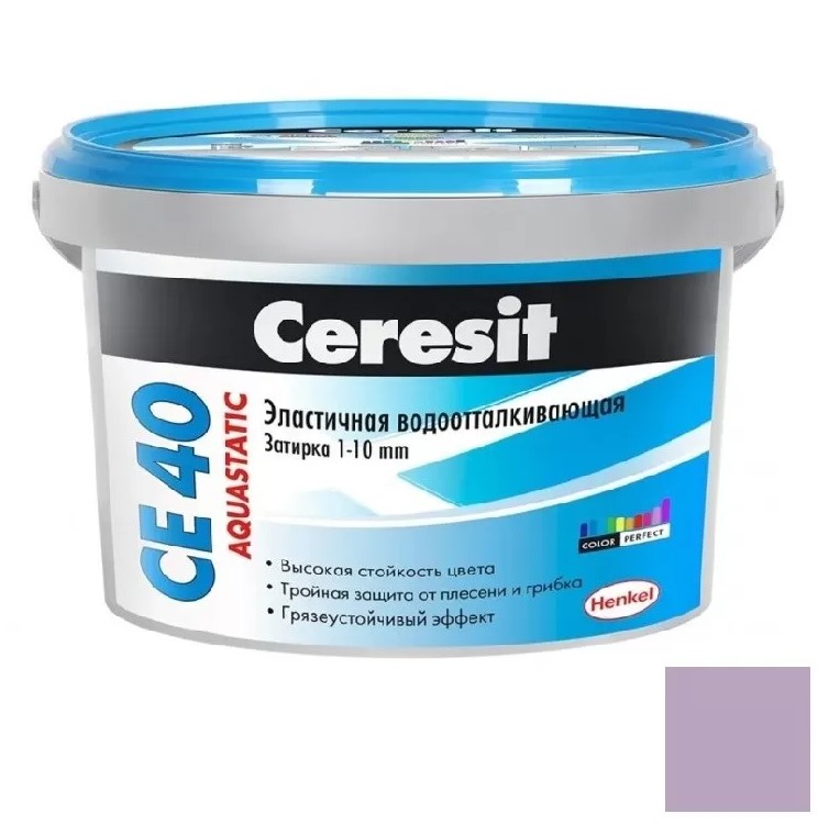 ЦЕРЕЗИТ CE А 40 (цвета - лаванда) - водоотталкивающая затирка с противогрибковым эффектом для швов плиточных облицовок. Используется для заполнения швов керамических, стеклянных и каменных облицовок шириной до 10 мм, на полах и стенах, при внутренних и наружных работах, в гражданском и промышленном строительстве. Затирка приобретает заявленный цвет по истечении 24-48 часов в зависимости от условий окружающей среды после затирания швов.