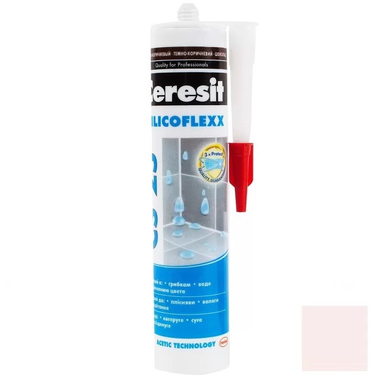 Затирка силиконовая Церезит CS 25 не имеет адгезии к резине, битуму, гудрону, тефлону, полиэтилену и материалам, выделяющим масла, пластификаторы или растворители. Содержит фунгициды и при отверждении выделяет уксусную кислоту, поэтому не пригодна для контакта с пищевыми продуктами, питьевой водой, мрамором, известняком, зеркалами, корродирующими металлами (свинцом, медью, цинком, железом) и герметизации аквариумов.