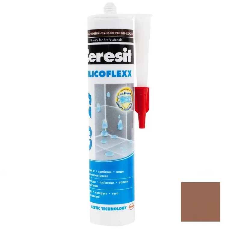Силиконовая затирка CERESIT CS 25 (цвет сиена) предназначена для герметизации угловых, деформационных и примыкающих к санитарно-техническому оборудованию (ваннам, раковинам и др.) швов плиточных облицовок в помещениях с повышенной влажностью: ванных комнатах, душевых, кухнях, туалетах и т.д. Обладает высокой адгезией к эмалированным поверхностям, стеклу, фарфору и фаянсу. Формула Trio Protection обеспечивает длительную стойкость к грибку и плесени. Благодаря высокой стойкости к УФ-излучению и озону может применяться при наружных работах.