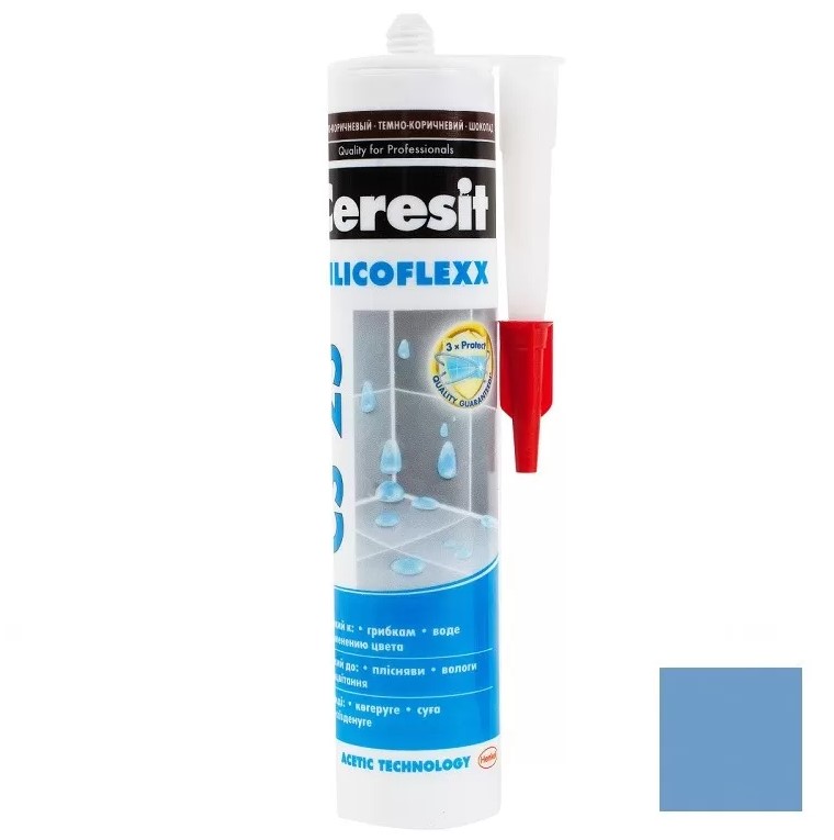 Силиконовая затирка CERESIT CS 25 (цвет голубой) предназначена для герметизации угловых, деформационных и примыкающих к санитарно-техническому оборудованию (ваннам, раковинам и др.) швов плиточных облицовок в помещениях с повышенной влажностью: ванных комнатах, душевых, кухнях, туалетах и т.д. Обладает высокой адгезией к эмалированным поверхностям, стеклу, фарфору и фаянсу. Формула Trio Protection обеспечивает длительную стойкость к грибку и плесени. Благодаря высокой стойкости к УФ-излучению и озону может применяться при наружных работах.
