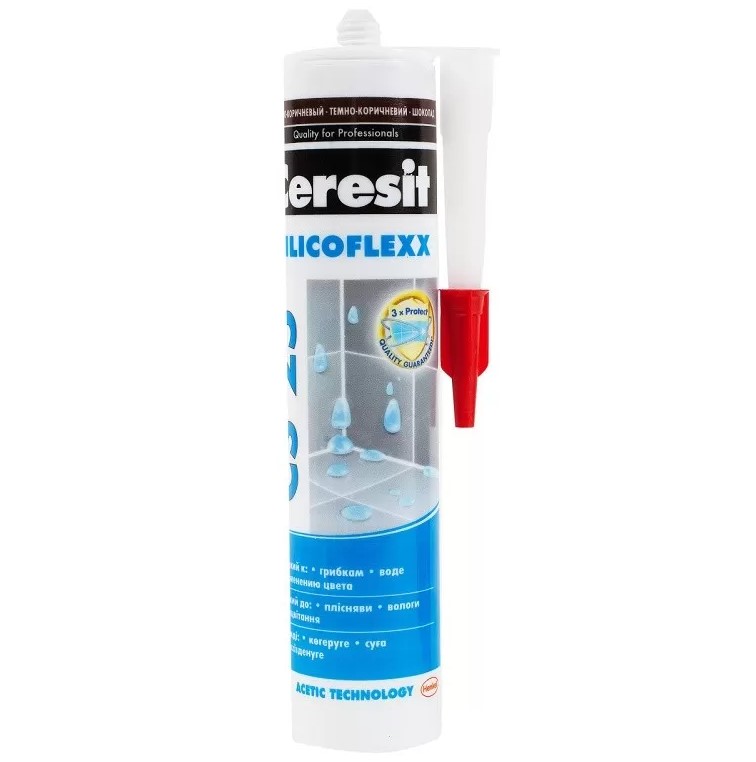 Затирка силиконовая Церезит CS 25 не имеет адгезии к резине, битуму, гудрону, тефлону, полиэтилену и материалам, выделяющим масла, пластификаторы или растворители. Содержит фунгициды и при отверждении выделяет уксусную кислоту, поэтому не пригодна для контакта с пищевыми продуктами, питьевой водой, мрамором, известняком, зеркалами, корродирующими металлами (свинцом, медью, цинком, железом) и герметизации аквариумов.