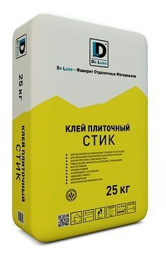 Клей плиточный Стик De Luxe (25 кг) - предназначен для облицовки стен и полов любой керамической плиткой, а также для укладки стандартного керамогранита на пол при внутренних и наружных работах в зданиях и сооружениях различного назначения.