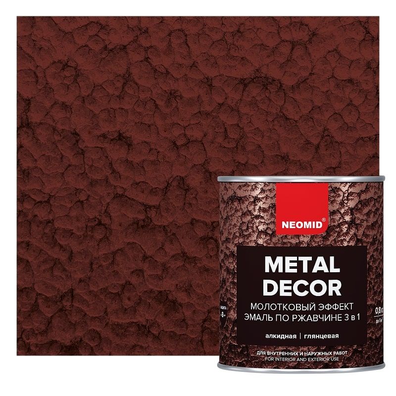 Эмаль по ржавчине с молотковым эффектом Neomid Н-ЭмМолот-0,8/гран, 0,8 кг предназначена для защитно-декоративной обработки неокрашенного и ранее окрашенного черного и оцинкованного металла, в том числе пораженного коррозией, с толщиной прочно связанной ржавчины не более 80 мкм внутри и снаружи помещений.