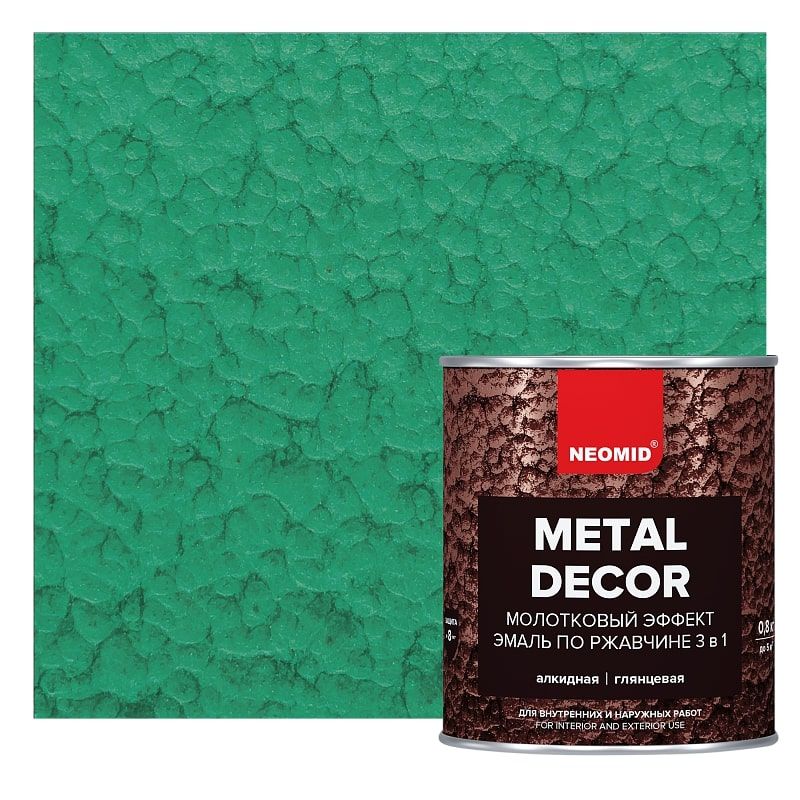 Эмаль по ржавчине с молотковым эффектом Neomid Н-ЭмМолот-2,5/изум, 2,5 кг предназначена для защитно-декоративной обработки неокрашенного и ранее окрашенного черного и оцинкованного металла, в том числе пораженного коррозией, с толщиной прочно связанной ржавчины не более 80 мкм внутри и снаружи помещений.