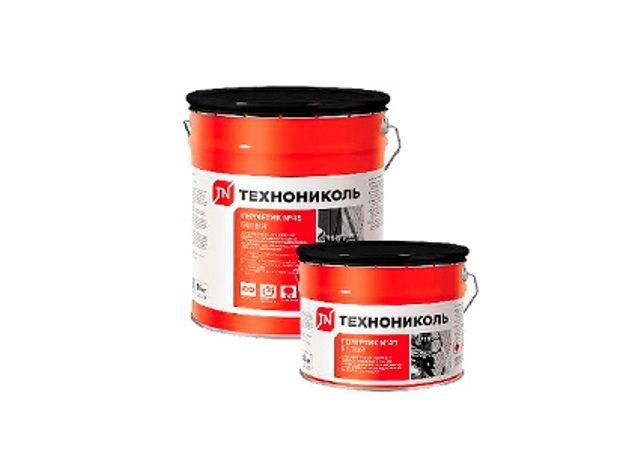 Герметик бутил-каучуковый ТехноНИКОЛЬ №45 (белый), ведро 16 кг состоит из бутилкаучука, органического растворителя, модифицирующих добавок и наполнителя. Относится к материалам холодного отверждения.