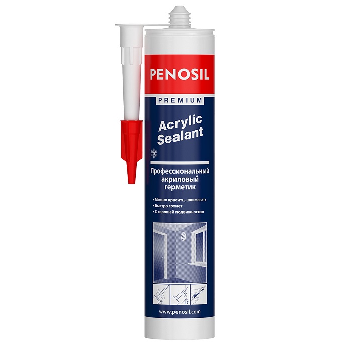 Акриловый герметик Penosil Premium Acrylic Sealant ярко-белого цвета для тонкого заполнения зазоров и трещин перед покраской.