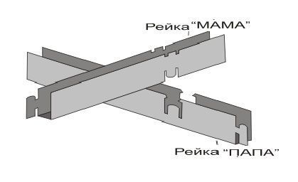 Griliato Е папа - несущий элемент решетки Грильято. Подвесной потолок Грильято состоит из решетчатых модулей. Каждый модуль имеет размеры 600х600 мм и собран из U-образных профилей. Профили Папа и Мама ( U-профили), которые соединяясь перпендикулярно друг другу, образуют решетку.