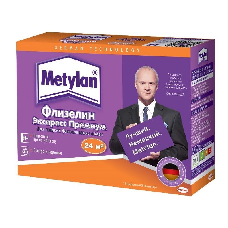 Клей Метилан Флизелин Экспресс Премиум (210г) - высококачественный клей на основе модифицированного крахмала. Предназначен для наклеивания структурных обоев на флизелиновой нетканой основе, для обоев под покраску, для обоев с гладкой и рефленой поверхностью, а также окрашенного флизелина, потолочных обоев на флизелиновой основе под покраску.