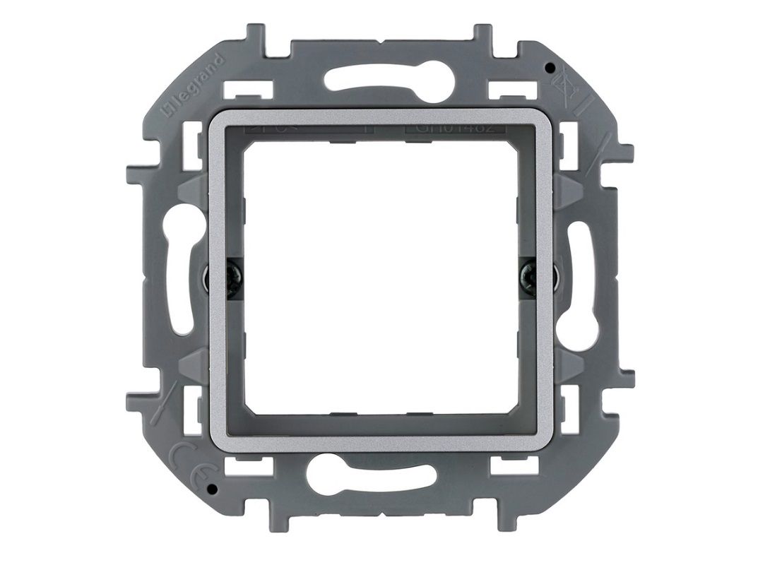 INSPIRIA Адаптер для механизмов IEK (Legrand) серии Mosaic алюминий предназначен для расширения функционального предложения коллекции Inspiria. Он обеспечивает легкую интеграцию более 200 функций из легендарной модульной серии Mosaic, например - розетки красного и зеленого цвета для специальных линий питания, датчики движения, воздушные термостаты, разьемы для передачи данных и т.д.