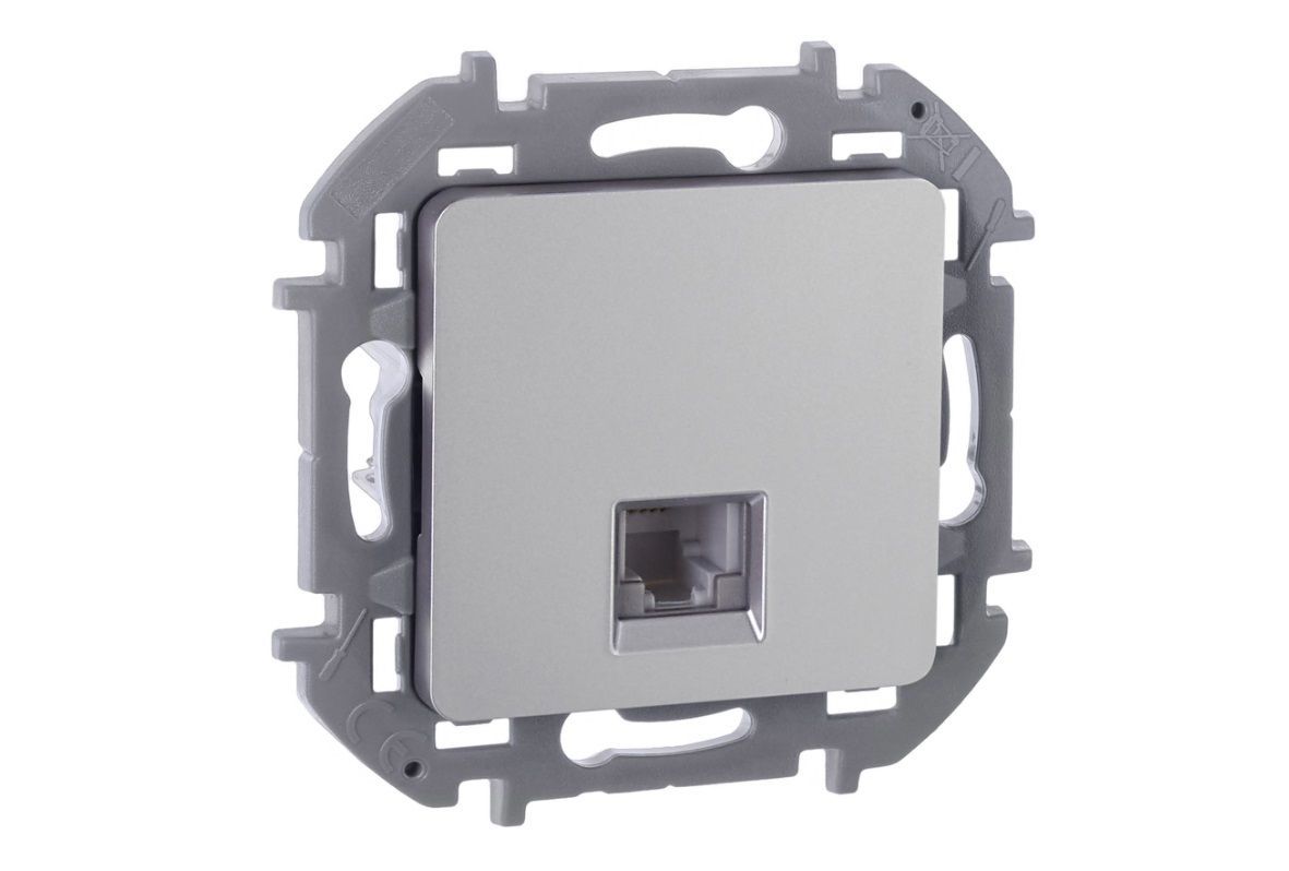 INSPIRIA Розетка телефонная IEK (Legrand) RJ11 алюминий применяется для быстрого подключения к сетям телекоммуникаций (например, к телефонным сетям общего пользования).