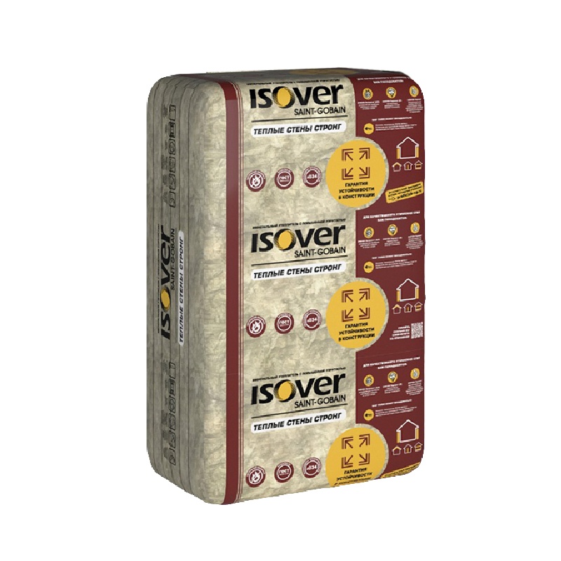 Плита ИЗОВЕР Теплые Стены Стронг 1000х610х100мм (3,05м2=0,305м3) (5шт) - звукоизоляция из минеральной ваты на основе кварцевого волокна. Производится из природных компонентов: кварцевого песка, соды, известняка. Является безопасным материалом для здоровья человека и окружающей среды: сертифицирован для применения в детских и медицинских учреждениях. Обладает повышенными теплоизоляционными характеристиками. Применяется для утепления внешних каркасных стен, внешних стен под облицовку: сайдинг, вагонка, блок-хаус, кирпич и т.д., утепление стен изнутри. Возможно утепление мансарды, скатной кровли.