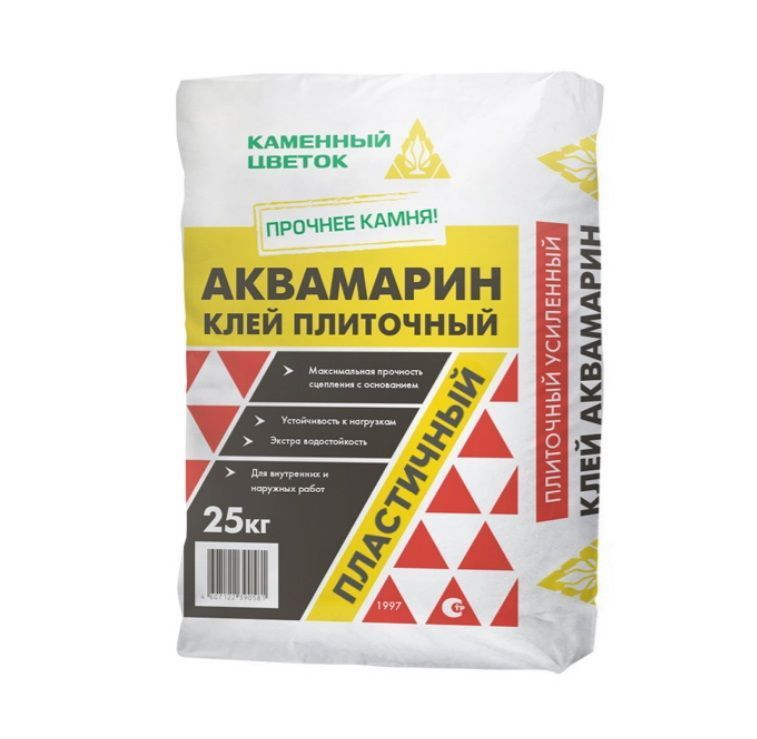 Плиточный клей ТМ “Каменный цветок” “АКВАМАРИН” серый предназначен для облицовки стен и пола плитами из мрамора, цветной и прозрачной стеклянной плиткой, декоративной мозаикой, стеклоблоками, гранатом, натуральным и искусственным камнем.