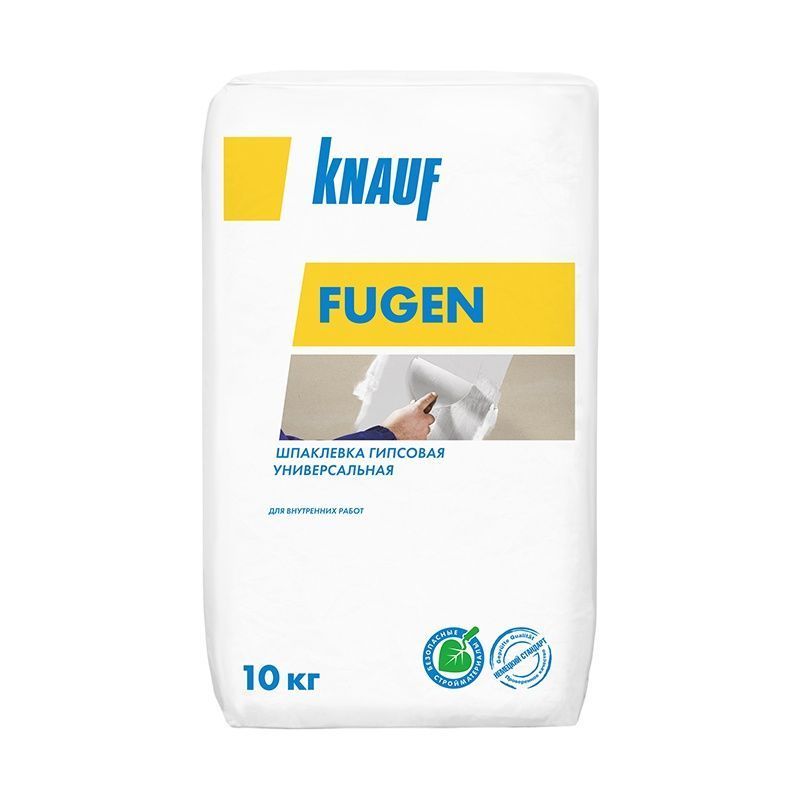 Шпаклевка Knauf Фуген (10кг) предназначена для заделки стыков гипсокартонных листов имеющих утонённую и полукруглую утонённую кромку, с использованием армирующей ленты для заделки трещин и других возможных повреждений гипсокартонных листов, для монтажа и заделки стыков гипсовых пазогребневых плит, для приклеивания к ровной поверхности гипсокартонных листов и комбинированных панелей, для тонкослойного шпаклевания плоских бетонных и оштукатуренных поверхностей.