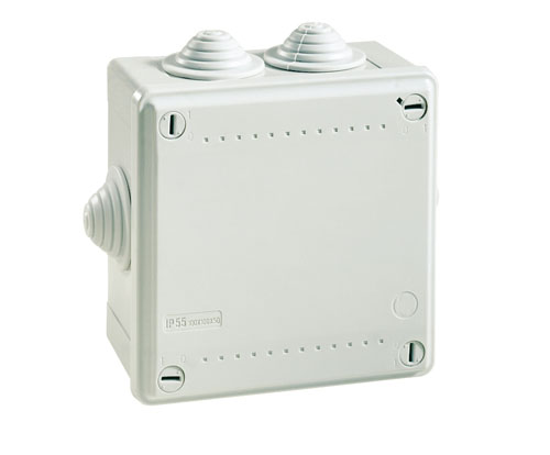 Данный вид коробок имеет фиксатор якорного типа для привязки крышки к основанию, а также бесшовный уплотнитель из вспененного полиуретана, что обеспечивает степень защиты IP55 внутреннего пространства от проникновения пыли и влаги. Конструкция герметичных вводов обеспечивает высокую плотность соединения с трубами или кабелями. Благодаря этому данная коробка может быть использована на открытом воздухе, а также во влажных и пыльных помещениях.
