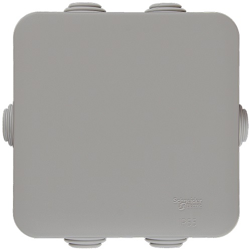 Коробка распределительная Schneider Electric размером 85х85х40мм со степенью защиты IP55 (арт. IMT35092) серого цвета предназначена для наружной установки и разветвления проводов и кабелей, а также для скрытия и дополнительной защиты мест коммутации. Коробки для открытого монтажа используются как часть системы электрической канализации, состоящей из жестких и гофрированных труб.
