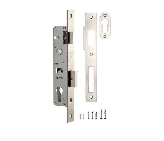Корпус узкопрофильного замка с защелкой PROF153-30/85 (153-30/85) CP хром Fuaro (Фуаро) предназначен для установки в алюминиевые и пластиковые входные двери. Универсальная защелка позволяет устанавливать корпус замка в двери правого и левого открывания. Стальной оцинкованный корпус с отверстием под евроцилиндр. Лицевая планка с гальваническим покрытием матовый хром. Ширина лицевой планки 23 мм. Размер бэксета 30 мм, размер межосевого расстояния 85 мм. Ответная планка и крепежная фурнитура в комплекте.