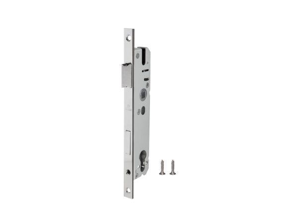 Корпус узкопрофильного замка с защелкой PROF4916-35/92 CP хром Fuaro (Фуаро) с защелкой предназначен для установки в алюминиевые и пластиковые входные двери. Универсальная защелка позволяет устанавливать корпус замка в двери правого и левого открывания. Стальной оцинкованный корпус с отверстиями под стяжные винты и евроцилиндр. Лицевая планка с гальваническим покрытием хром. Ширина лицевой планки 16 мм. Размер бэксета 35 мм, размер межосевого расстояния 92 мм.