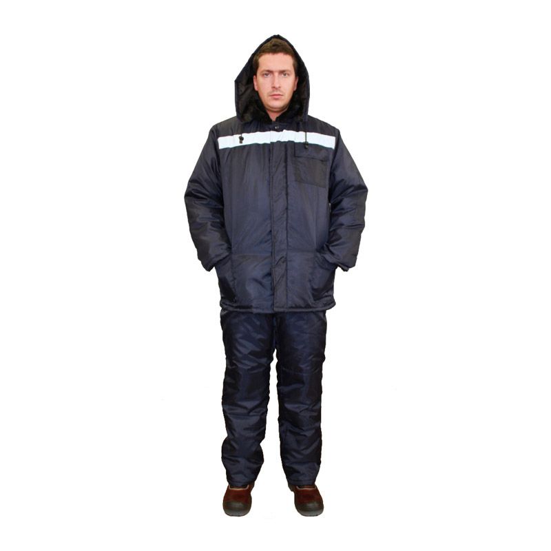 Костюм рабочий мужской зимний (куртка+полукомбинезон), размер 48-50/ 170-176 предназначен для защиты от пониженных температур и производственных загрязнений. Состоит из куртки и полукомбинезона. Куртка удлиненная с меховым воротником, накладными карманами с клапаном, с усилениями на локтях и световозвращающей лентой 5 см по полочке и спинке, съемным капюшоном на пуговицах. Полукомбинезон оснащен накладными карманами и усилениями на коленях, центральная застежка на пуговицу.