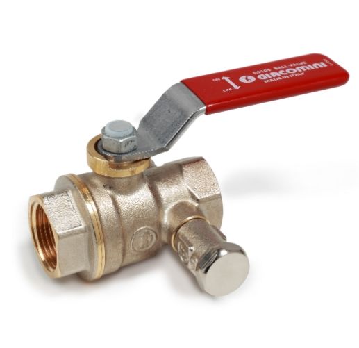 Кран шаровой латунь никель со спускником R910S Ду32 Ру35 BР 1 1/4 полнопроходной рычаг Giacomini R910SX006