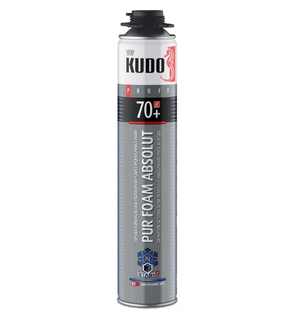 Пена полиуретановая монтажная КУДО PROFF 70+ ARKTIKA NORD (1л) предназначена для монтажа светопрозрачных конструкций, дверных блоков, подоконников, крепления стеновых панелей, герметизации щелей, пустот, тепло- и шумоизоляции швов, а также для других строительных, отделочных и монтажных работ в зимнее время года при температуре окружающей среды до –25°С. Высококачественная однокомпонентная полиуретановая зимняя монтажная пена KUDO® PROFF 70+ ARKTIKA NORD обладает высокой адгезией к большинству строительных материалов, таких как: бетон, кирпич, штукатурка, дерево, пластик, за исключением полиэтилена, полипропилена и фторопласта. Обеспечивает равномерный, стабильный выход и идеальную мелкопористую структуру готовой пены. Создает превосходную термо- и звукоизоляцию. Не деформирует конструкцию благодаря низкому вторичному расширению.