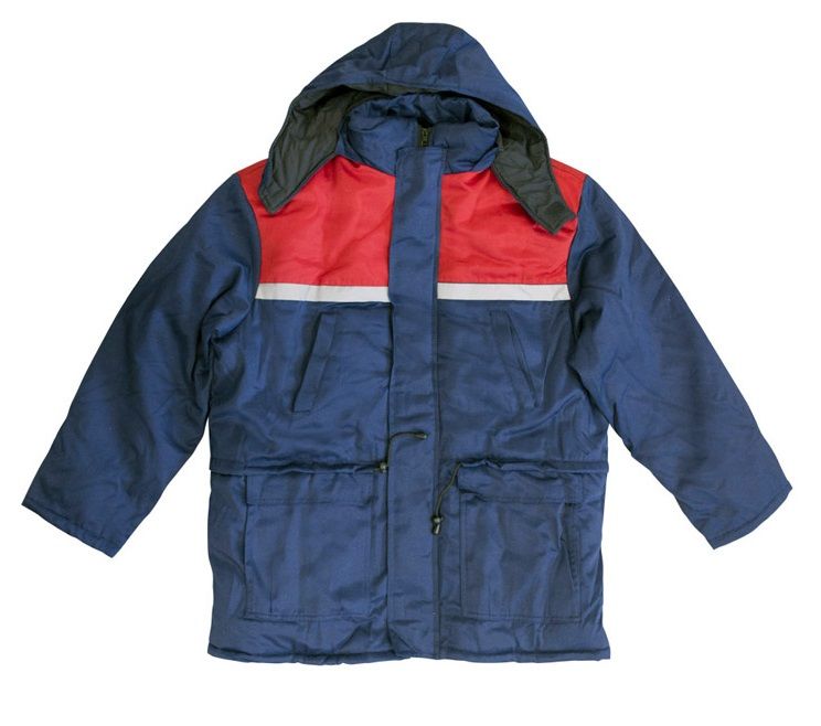 Куртка зимняя смесовая ткань (3 класс теплозащиты), р-р 44-46 / 170-176 используется в качестве защитной спецодежды при проведении работ в условиях пониженных температур. Куртка исполнена в темно-синем цвете с кокеткой красного цвета. Изготовлена из смесовой ткани Балтекс. Застегивается на пуговицы, Оснащена отложным воротником и капюшоном. Рукава-манжеты на пуговицах. Куртка имеет 4 накладных кармана: 2 верхних - с клапаном на липучке, 2 нижних - с косым входом. Оснащена поясом на резинке с двух сторон.