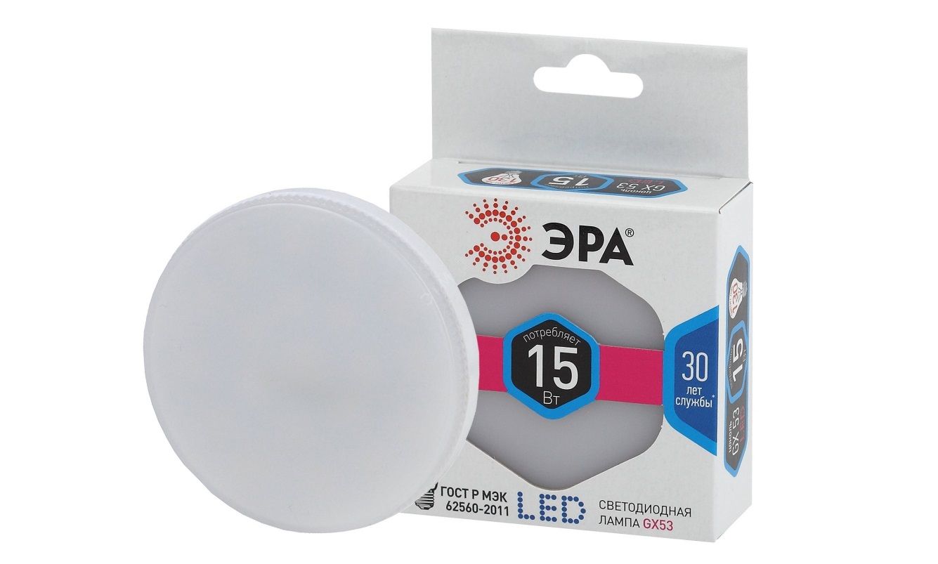Лампа светодиодная Эра GX-15W-840-GX53 Б0036552 - современный, качественный и доступный источник света. Позволяет экономить до 90% электроэнергии по сравнению с лампой накаливания с аналогичным световым потоком. Светит ярким белым светом, который максимально приближен к естественному дневному. Идеальна для ежедневного применения в быту. Мгновенное включение. Ровное освещение. Можно использовать как с люстрами, так и со светильниками, в том числе настольными и бра.