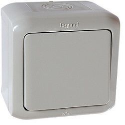 Legrand Quteo Выключатель одноклавишный наружный IP44 серый 10А (782330)