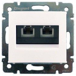 VALENA Розетка телефонная RJ11х2 в рамку белая предназначена для подключения электроприборов к силовой электрической сети.