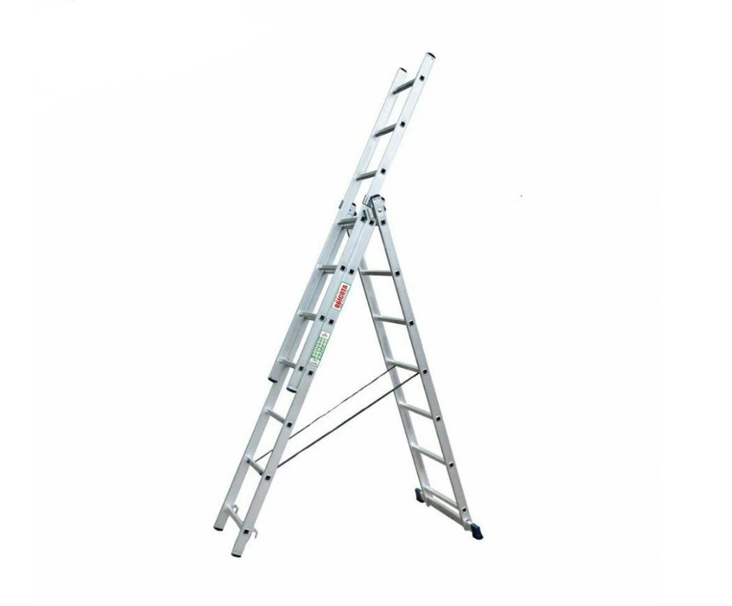 Лестница GEVA трехсекционная VL3x17, 4.85/8.57/12.28 м - замечательный выбор для проведения работ на высоте. Ее конструкция позволяет изменять конфигурацию в зависимости от требований и задач. Такая модель может использоваться как приставная лестница или стремянка, что делает ее чрезвычайно универсальной и удобной в различных ситуациях. Алюминиевый сплав обеспечивает изделию прочность и легкость, что важно для транспортировки и установки. Продуманное расположение ступеней создает оптимальные условия для подъема и безопасного удержания на высоте. Лестницу можно использовать вне помещения. Конструкция стойкая к воздействию неблагоприятных погодных условий благодаря коррозионностойким свойствам алюминия. Этот фактор является одним из главных преимуществ модели перед аналогичными решениями из других материалов.
