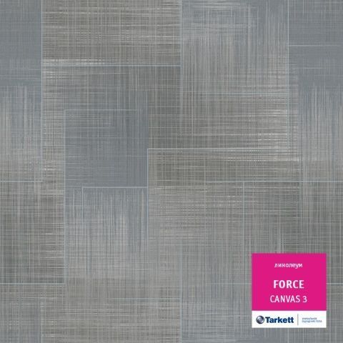 TARKETT FORCE CANVAS 3 с шириной 3 м - полукоммерческий линолеум с полиуретановым защитным слоем. Самая прочная и плотная коллекция- чемпион по устойчивости к истиранию. Уникальная комбинация высокой износостойкости и универсальных расцветок для дома и офиса. Нейтральные абстрактные дизайны, качественные имитации натурального камня и дерева подчеркивают собственный неповторимый стиль каждого интерьера.