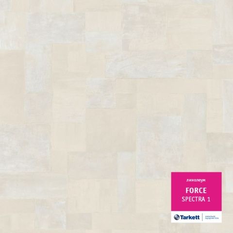TARKETT FORCE SPECTRA 1 с шириной 2,5 м - полукоммерческий линолеум с полиуретановым защитным слоем. Самая прочная и плотная коллекция- чемпион по устойчивости к истиранию. Уникальная комбинация высокой износостойкости и универсальных расцветок для дома и офиса. Нейтральные абстрактные дизайны, качественные имитации натурального камня и дерева подчеркивают собственный неповторимый стиль каждого интерьера.