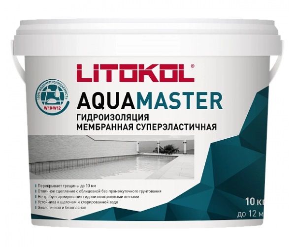 Однокомпонентная гидроизоляция Литокол Aquamaster эластичная готовая серая 10кг применяется для наружных и внутренних работ в отапливаемых и неотапливаемых, влажных помещениях всех типов: жилые помещения (гостиные, кухни, ванные комнаты, санузлы и т.п.) общественные помещения (входные группы, МОП, медицинские, образовательные учреждения, подсобные помещения, супермаркеты, торговые центры) применяется в системе «теплый пол» применяется в фонтанах, бассейнах, SPA. Основания: гипсокартон, гипсоволокнистые листы гипсовые штукатурки цементные стяжки (в том числе с подогревом) и штукатурки ДСП, ЦСП, ОСП, фанера кладки из кирпича, камня, газобетона бетон.