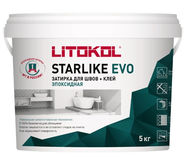 Литокол эпоксидная затирка Starlike Evo S125 Grigio Cemento 5кг - цветной двухкомпонентный эпоксидный состав, используемый для заполнения плиточных швов шириной 1-15 мм. Отличается превосходной прочностью и стойкостью к интенсивным нагрузкам, широкой цветовой гаммой, отвечающей современным тенденциям строительства и дизайна. Благодаря уникальной инновационной формуле не прокрашивает облицовочные материалы. Применяется как затирка для швов и кислотостойкий клей для укладки плитки и мозаики. Эпоксидная затирка для межплиточных швов применяется при внутренней и наружной облицовке: стен и полов в сухих и влажных помещениях - ванных и душевых, кухнях, саунах и хамамах фасадов, балконов и террас, лестниц, эксплуатируемых кровель водонагруженных конструкций - чаш бассейнов и фонтанов полов с электрическим или водным подогревом. Благодаря высоким техническим характеристикам - химической стойкости, устойчивости к механическим нагрузкам, затирка Старлайк Эво нашла применение не только в жилых помещениях, но и при облицовочных работах на промышленных и общественных объектах - прежде всего на пищевом производстве (в том числе отделка поверхностей, имеющих постоянный контакт с продуктами), в холодильных камерах и в химических лабораториях, в автосервисах, в торговых центрах и ресторанах, в медицинских и образовательных учреждениях, на вокзалах и в аэропортах. Отлично подходит для заполнения швов и укладки: керамической плитки и керамогранита, кислотоупорной плитки и клинкера, натурального и искусственного камня, агломерата, дерева, стеклоблоков, мозаики всех видов - керамической, керамогранитной, стеклянной, зеркальной, металлической, художественной. Работает по следующим типам строительных оснований: цементные и бетонные стяжки и штукатурки существующие плиточные облицовки (укладка «плитка на плитку») поверхности, покрытые гидроизоляционными составами цементные стяжки с подогревом - водяным и электрическим листовые материалы - гипсокартон, ГВЛ, АКВАПАНЕЛЬ, ДСП, ЦСП, ОСП и пр. Преимущества эпоксидной затирки Litokol Starlike Evo: затирка Старлайк Эво предназначена для облицовки поверхностей, к которым предъявляют высокие эксплуатационные требования и имеет универсальное применение - она востребована при наружных и внутренних работах, при отделке горизонтальных, вертикальных и наклонных поверхностей. Помимо прекрасных технических и эксплуатационных характеристик, отличительной особенностью затирки является отсутствие эффекта прокрашивания, что очень важно при работе с чувствительными породами камня, мозаикой. Поверхности, облицованные с использованием Litokol Starlike Evo, устойчивы к воздействию химических веществ, имеют превосходную атмосферостойкость и механическую прочность. Цветовая гамма затирки может быть расширена за счет использования декоративных добавок STARLIKE FINISHES, создающих уникальные визуальные эффекты. Межплиточные швы, заполненные Старлайк Эво износостойкие, не выцветают и не желтеют со временем, легко очищаются с использованием воды и бытовых моющих средств. Затирка представлена в упаковках 3 видов - 1 кг, 2.5 кг, 5 кг, что удобно для проведения облицовочных работ разных объёмов. Кроме того, Starlike Evo экологически безопасна, легко наносится и существенно сокращает время проведения плиточных работ по сравнению с цементными зати