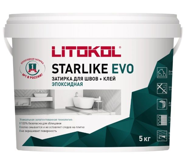 Литокол эпоксидная затирка Starlike Evo S208 Sabbia 5кг - цветной двухкомпонентный эпоксидный состав, используемый для заполнения плиточных швов шириной 1-15 мм. Отличается превосходной прочностью и стойкостью к интенсивным нагрузкам, широкой цветовой гаммой, отвечающей современным тенденциям строительства и дизайна. Благодаря уникальной инновационной формуле не прокрашивает облицовочные материалы. Применяется как затирка для швов и кислотостойкий клей для укладки плитки и мозаики. Эпоксидная затирка для межплиточных швов применяется при внутренней и наружной облицовке: стен и полов в сухих и влажных помещениях - ванных и душевых, кухнях, саунах и хамамах фасадов, балконов и террас, лестниц, эксплуатируемых кровель водонагруженных конструкций - чаш бассейнов и фонтанов полов с электрическим или водным подогревом. Благодаря высоким техническим характеристикам - химической стойкости, устойчивости к механическим нагрузкам, затирка Старлайк Эво нашла применение не только в жилых помещениях, но и при облицовочных работах на промышленных и общественных объектах - прежде всего на пищевом производстве (в том числе отделка поверхностей, имеющих постоянный контакт с продуктами), в холодильных камерах и в химических лабораториях, в автосервисах, в торговых центрах и ресторанах, в медицинских и образовательных учреждениях, на вокзалах и в аэропортах. Отлично подходит для заполнения швов и укладки: керамической плитки и керамогранита, кислотоупорной плитки и клинкера, натурального и искусственного камня, агломерата, дерева, стеклоблоков, мозаики всех видов - керамической, керамогранитной, стеклянной, зеркальной, металлической, художественной. Работает по следующим типам строительных оснований: цементные и бетонные стяжки и штукатурки существующие плиточные облицовки (укладка «плитка на плитку») поверхности, покрытые гидроизоляционными составами цементные стяжки с подогревом - водяным и электрическим листовые материалы - гипсокартон, ГВЛ, АКВАПАНЕЛЬ, ДСП, ЦСП, ОСП и пр. Преимущества эпоксидной затирки Litokol Starlike Evo: затирка Старлайк Эво предназначена для облицовки поверхностей, к которым предъявляют высокие эксплуатационные требования и имеет универсальное применение - она востребована при наружных и внутренних работах, при отделке горизонтальных, вертикальных и наклонных поверхностей. Помимо прекрасных технических и эксплуатационных характеристик, отличительной особенностью затирки является отсутствие эффекта прокрашивания, что очень важно при работе с чувствительными породами камня, мозаикой. Поверхности, облицованные с использованием Litokol Starlike Evo, устойчивы к воздействию химических веществ, имеют превосходную атмосферостойкость и механическую прочность. Цветовая гамма затирки может быть расширена за счет использования декоративных добавок STARLIKE FINISHES, создающих уникальные визуальные эффекты. Межплиточные швы, заполненные Старлайк Эво износостойкие, не выцветают и не желтеют со временем, легко очищаются с использованием воды и бытовых моющих средств. Затирка представлена в упаковках 3 видов - 1 кг, 2.5 кг, 5 кг, что удобно для проведения облицовочных работ разных объёмов. Кроме того, Starlike Evo экологически безопасна, легко наносится и существенно сокращает время проведения плиточных работ по сравнению с цементными затиркам