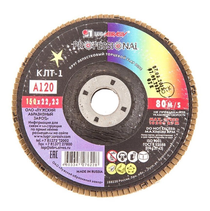 Диск лепестковый по металлу ЛУГА (150х22мм) Р120 - это специальная насадка в форме диска на шлифовальную машинку, болгарку, стационарные станки и другое электрооборудование. Изделия применяют в строительстве, ремонте, производстве, автомобильной сфере для полировки, зачистки, финишной шлифовки различных поверхностей. предназначен для установки на точильные станки для плоского шлифования и обработки кромок и сварных швов деталей и конструкций из различных марок сталей, цветных металлов и древесины.