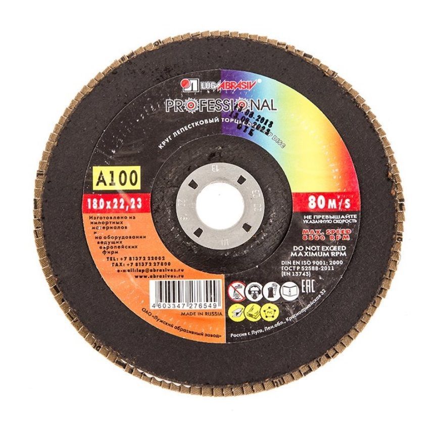 Диск лепестковый по металлу ЛУГА (180х22мм) Р100 - это специальная насадка в форме диска на шлифовальную машинку, болгарку, стационарные станки и другое электрооборудование. Изделия применяют в строительстве, ремонте, производстве, автомобильной сфере для полировки, зачистки, финишной шлифовки различных поверхностей. предназначен для установки на точильные станки для плоского шлифования и обработки кромок и сварных швов деталей и конструкций из различных марок сталей, цветных металлов и древесины.