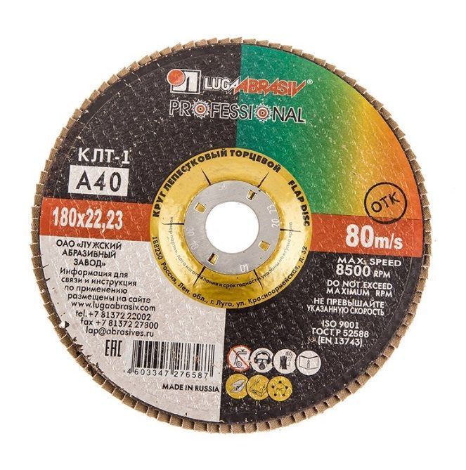 ЛУГА Диск лепестковый по металлу 180х22мм Р40 (5/40) - это специальная насадка в форме диска на шлифовальную машинку, болгарку, стационарные станки и другое электрооборудование. Изделия применяют в строительстве, ремонте, производстве, автомобильной сфере для полировки, зачистки, финишной шлифовки различных поверхностей. предназначен для установки на точильные станки для плоского шлифования и обработки кромок и сварных швов деталей и конструкций из различных марок сталей, цветных металлов и древесины.