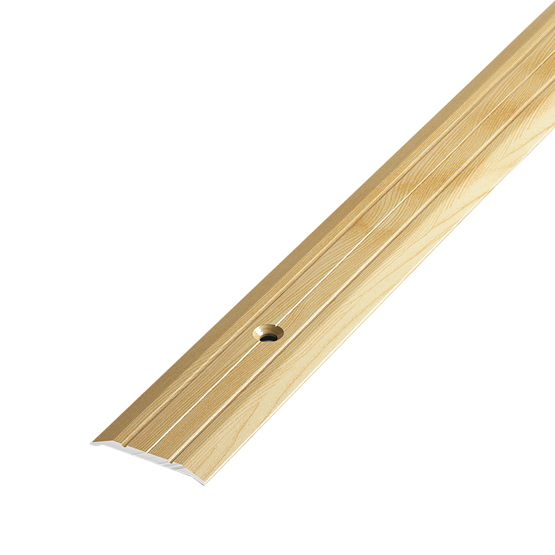 Данная модель предназначена для скрытия стыков двух одноуровневых напольных покрытий, изготовленных из различных материалов. Пороги с отверстиями для монтажа поставляются в индивидуальной упаковке с саморезами (d 3,0 мм х 25,0 мм) и дюбелями.