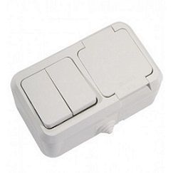 Влагозащищенный электроустановочный блок открытой проводки с двухклавишным выключателем и евророзеткой с крышкой 18351 (Makel) применяется для наружного монтажа и предназначен для управления освещением источника света в местах с повышенной влажностью (IP44).