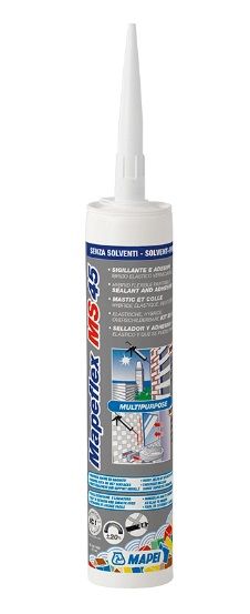 Мапеи герметик Mapeflex MS45 Bianco однокомпонентный 300мл - однокомпонентный эластичный тиксотропный быстросхватывающийся гибридный герметик и клей на основе силилированных полимеров с высоким модулем эластичности. Mapeflex MS45 специально разработан для герметизации конструкционных, угловых и деформационных швов на горизонтальных и вертикальных поверхностях. Продукт рекомендуется применять для создания внутренних и внешних эластичных соединений между аналогичными и разнородными материалами, которые традиционно используют в строительной промышленности, а также для замены или объединения машиностроительных крепежей. По сравнению с полиуретановыми продуктами Mapeflex MS45 легко выдавливается и выравнивается (особенно при нанесении при низких температурах), имеет более широкий температурный интервал нанесения, не вздувается даже при очень влажных условиях, устойчив к ультрафиолетовым лучам, быстрее затвердевает, имеет длительный срок хранения и поставляется в удобных для применения пластиковых картриджах. По сравнению с нейтральными силиконовыми продуктами Mapeflex MS45 обеспечивает более качественную герметизацию на плотных и впитывающих основаниях, существенно снижает количество грязи, собирающейся на поверхности, имеет высокие механические свойства, такие как прочность на растяжение и сдвиг, может окрашиваться обычными окрашивающими материалами. Mapeflex MS45 также может быть применен на основаниях, которые временно влажные из-за неподходящих условий окружающей среды (дождь, конденсат, роса и т.д.) при непрерывном поднятии капиллярной влаги заранее нанесите слой Primer FD.