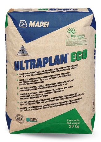 Мапеи cтроительный состав д/выравн. полов Ultraplan Eco 23кг - быстротвердеющий самовыравнивающийся цементный состав для финишного выравнивания горизонтальных поверхностей с очень низкой эмиссией летучих органических соединений. Создает прочное (> 26 МПа) и ровное основание под укладку: плитки, гибких и ковровых покрытий, паркета, ламината и т.д. укладка финишного декоративного покрытия возможна от 12 часов в зависимости от вида покрытия и условий окружающей среды благодаря быстрому набору прочности (~50 % – от проектной через 24 часа) минимальный слой нанесения от 1 мм и свойства самовыравнивания и самонивелирования позволяют произвести финишное выравнивание под последующую укладку покрытий для жилого, коммерческого и промышленного типа зданий безопасен на всех этапах – нанесении, высыхании и эксплуатации, подтверждено присвоением класса безопасности EC1.