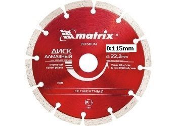 MATRIX PREMIUM Диск алмазный отрезной сегментный, 115 х22,2мм