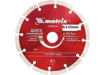 MATRIX PREMIUM Диск алмазный отрезной сегментный, 125 х22,2мм