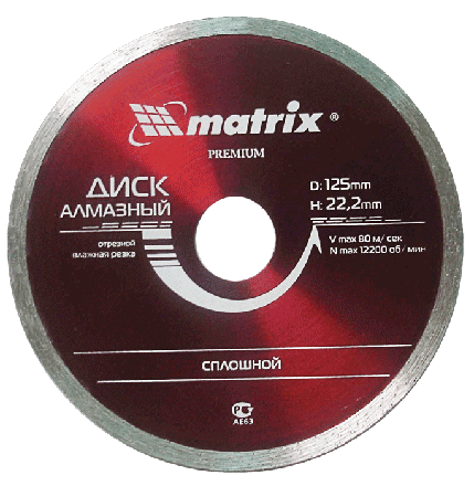 MATRIX PREMIUM 73185 Диск алмазный отрезной сплошной, 125 х22,2 мокрая резка